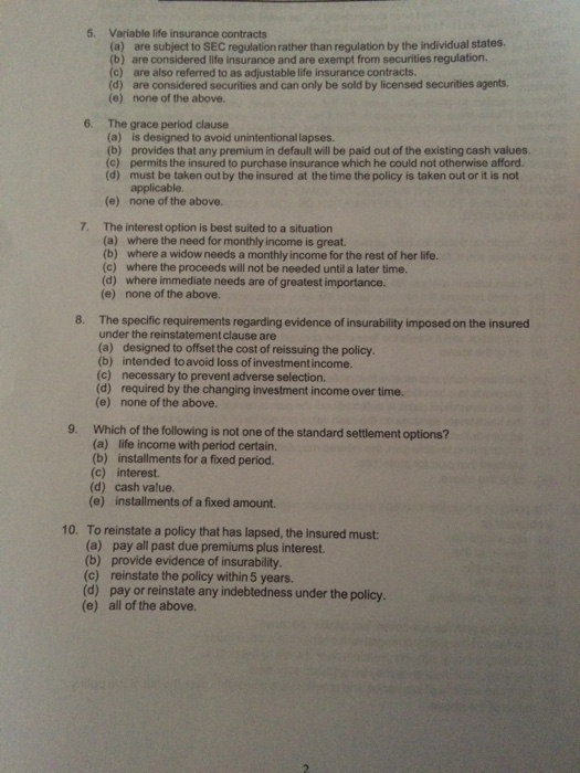 5 Variable Life Insurance Contracts A We Subjec Chegg Com